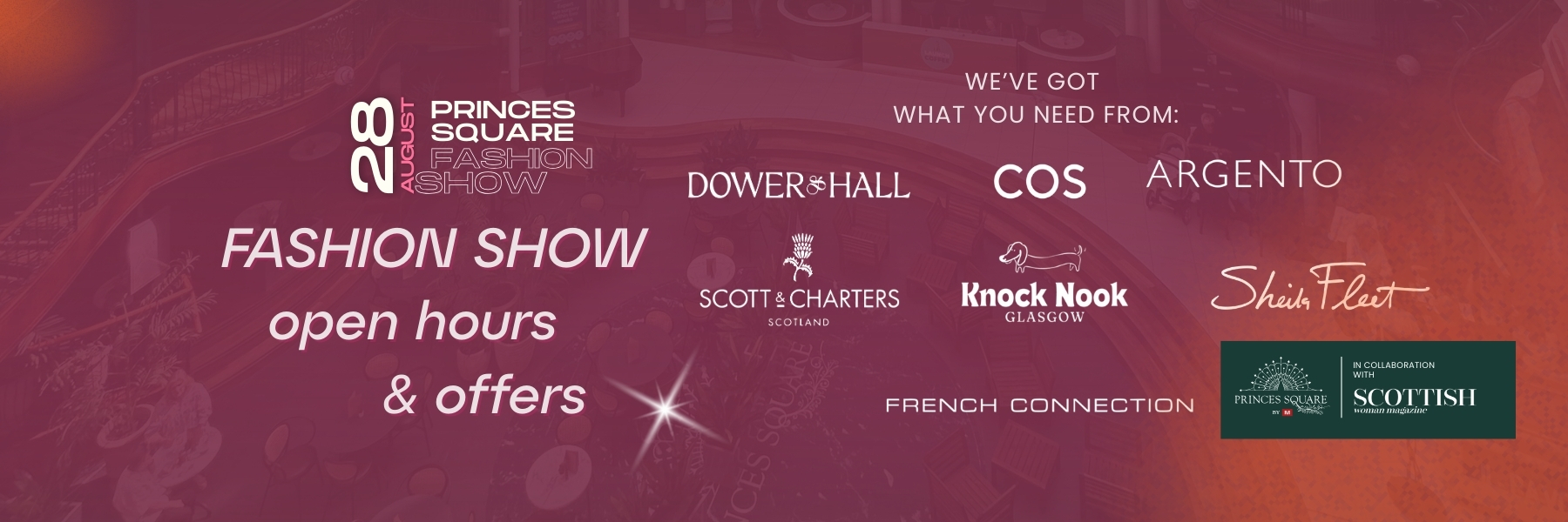 Whether you’re coming for the fashion show, shopping for exclusive offers, or joining us for the Anna Campbell-Jones launch event & Fashion Show, Princes Square is the place to be tomorrow night.